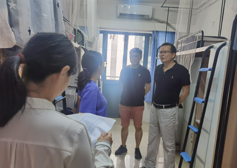 7月9日下午,350vip8888新葡的京集团党委书记曹勇、院长鞠少卿率队开展暑假前安全检查工作。